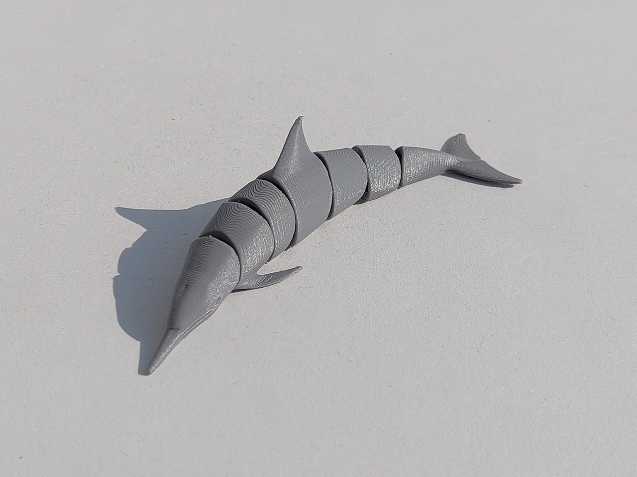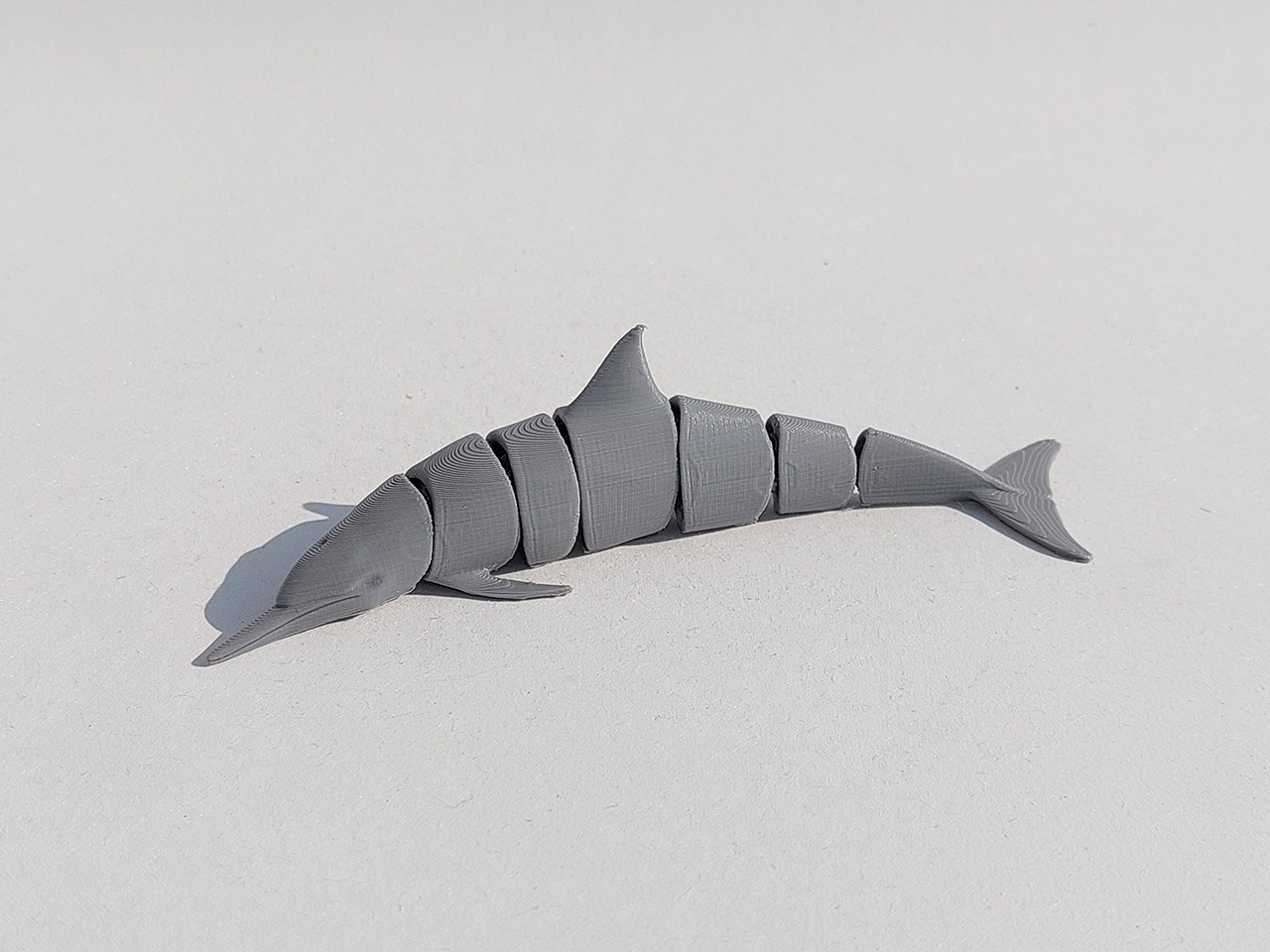 Lankstus žaislas delfinas. Lankstosi gaminio kūnas. Mūsų naudojamas ekologiškas plastikas gaminamas iš cukraus, todėl yra tinkamas ir vaikams. Šiam gaminiui yra galimybė užsakyti kitą dydį, daugiau apie gaminio dydžio keitimą čia.