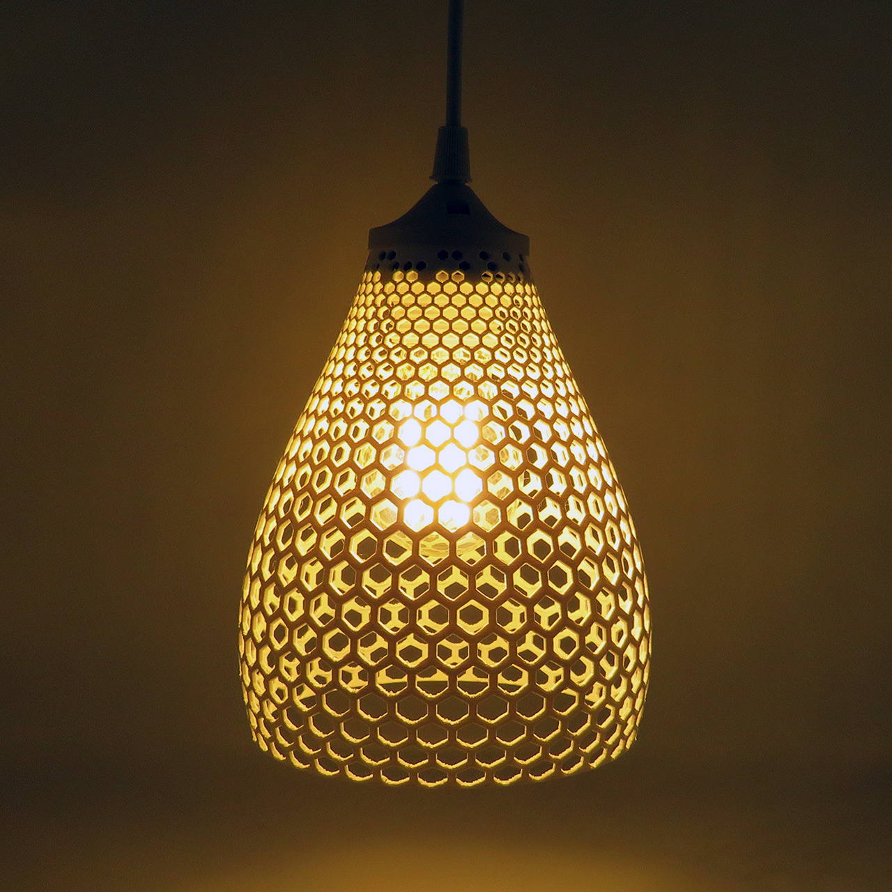 Unikalus pakabinamas šviestuvas su bičių korio formos ertmėmis. Šviestuvui gaminti naudojamas PLA tvirtas plastikas. Šiam gaminiui galima rinktis iš visų PLA Tvirtas plastiko spalvų.