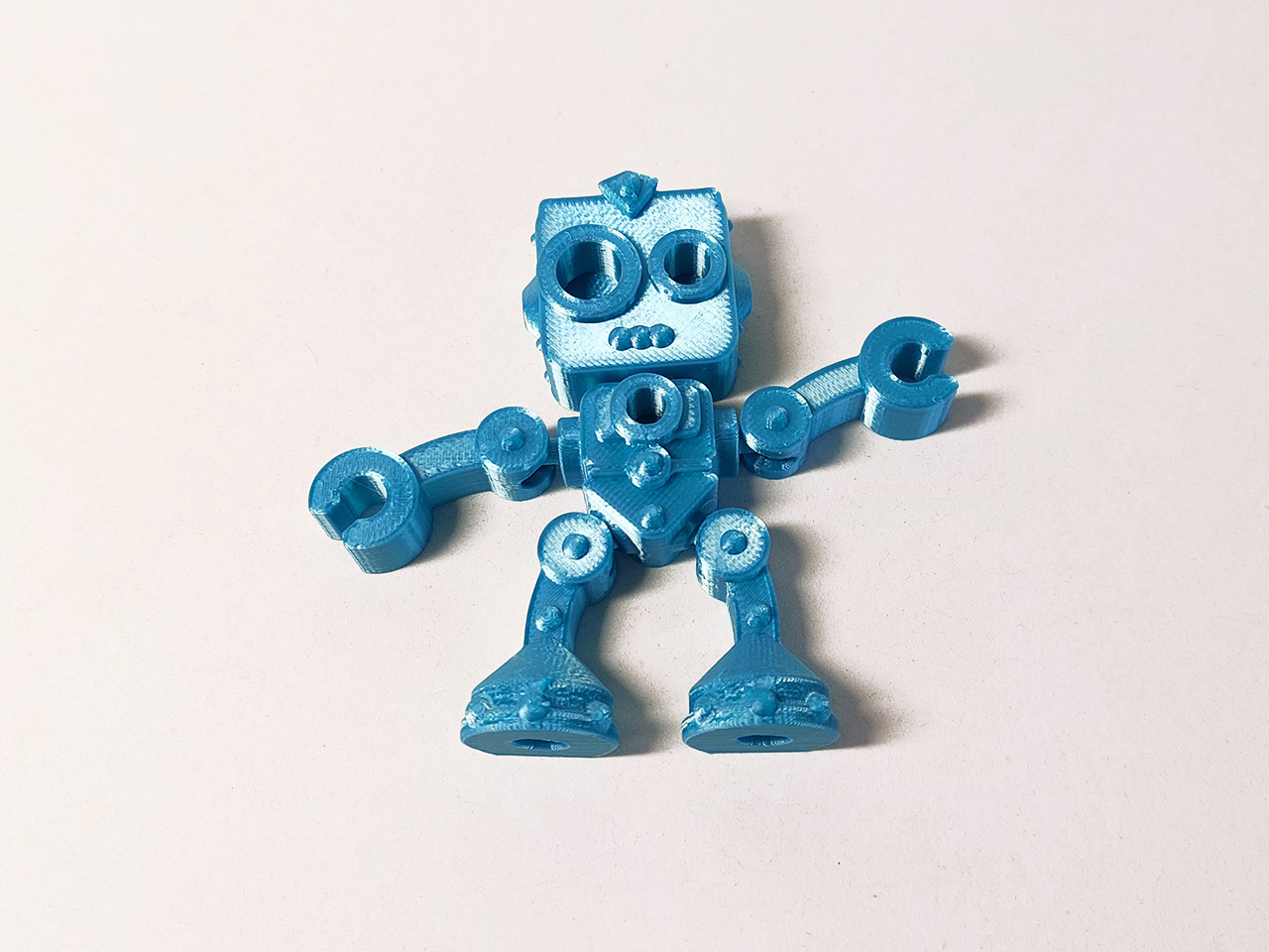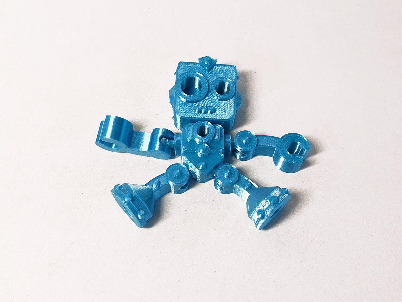 Robotas žaislas lankstus. Lankstosi gaminio rankos, kojos ir galva. Gamybai naudojame ekologišką plastiką gaminamą iš cukraus, todėl gaminiai puikiai tinka ir vaikams. Šiam gaminiui yra galimybė užsakyti kitą dydį, daugiau apie gaminio dydžio keitimą čia.