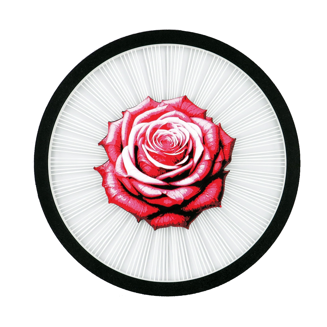Stalinė dekoracija Rožė, pastatoma su keičiamomis dekoracijomis. Ši apskritimo formos dekoracija turi spalvotą piešinį sukurtą iš kelių plastiko spalvų – rožės žiedą kuris tarsi sklendžia ore palaikomas plastiko gijų (dekoracijoje iš viso yra 150 plastiko gijų, o 1 gijos storis yra mažesnis nei 1mm). Piešinys yra abiejose pusėse, todėl šią dekoraciją galima naudoti iš dviejų pusių.