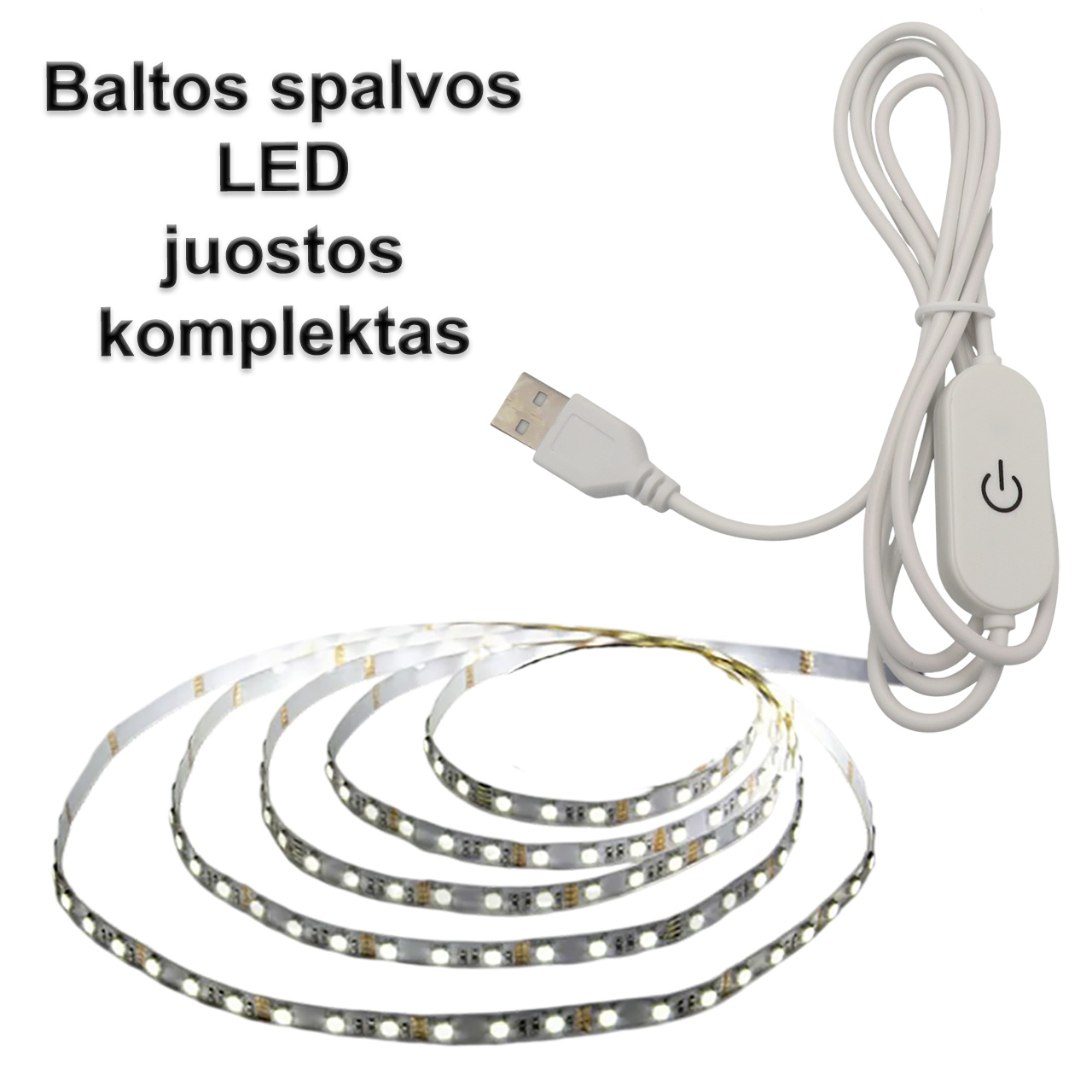 1. Baltos spalvos LED juosta šviečia tik balta spalva, o jungiklis gali išjungti/įjungti šviestuvą bei reguliuoti švietimo intensyvumą, pritemdyti/pašviesinti.