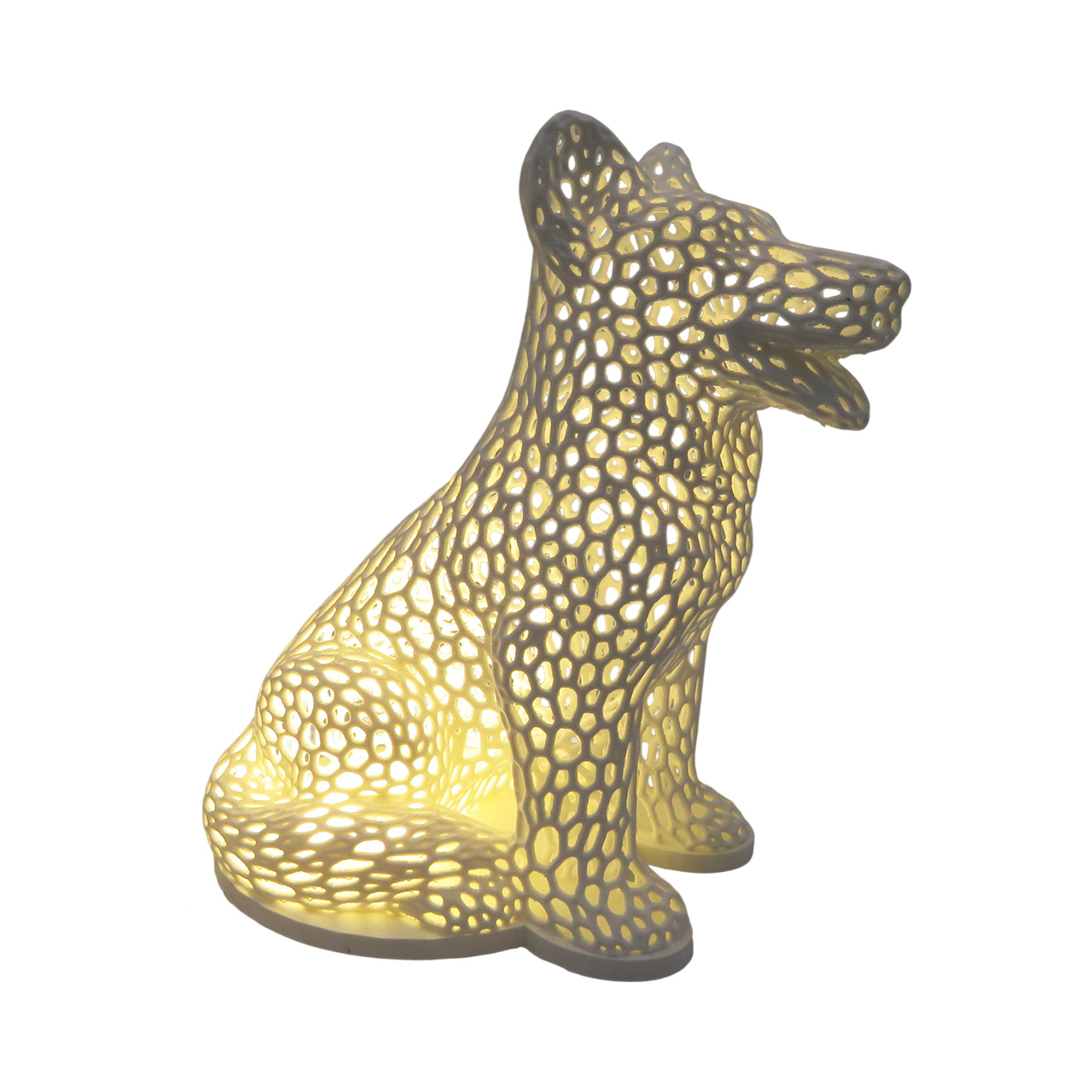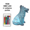 Stalinis naktinis 3D šviestuvas Šuo/šuniukas su ertmėmis, LED, pastatomas. Šis šunio formos šviestuvas yra ne vientisas o su ertmėmis, per kurias sklinda šviesa. Šis šviestuvas yra naktinis ir skaitymui netinka.