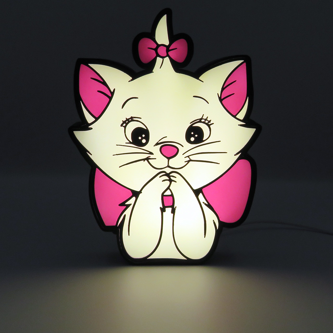 Vaikiškas LED šviestuvas Katytė, pastatomas, 3D. Šis katės formos šviestuvas šviečia tik į vieną pusę yra naktinis ir skaitymui netinka.