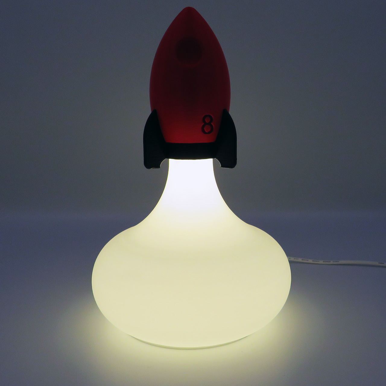 ● Plastikas šiam šviestuvui yra: PLA ir PLA baltas lempoms, o spalvos: raketos apačia (dūmai) – balta, raketa – raudona ir juoda